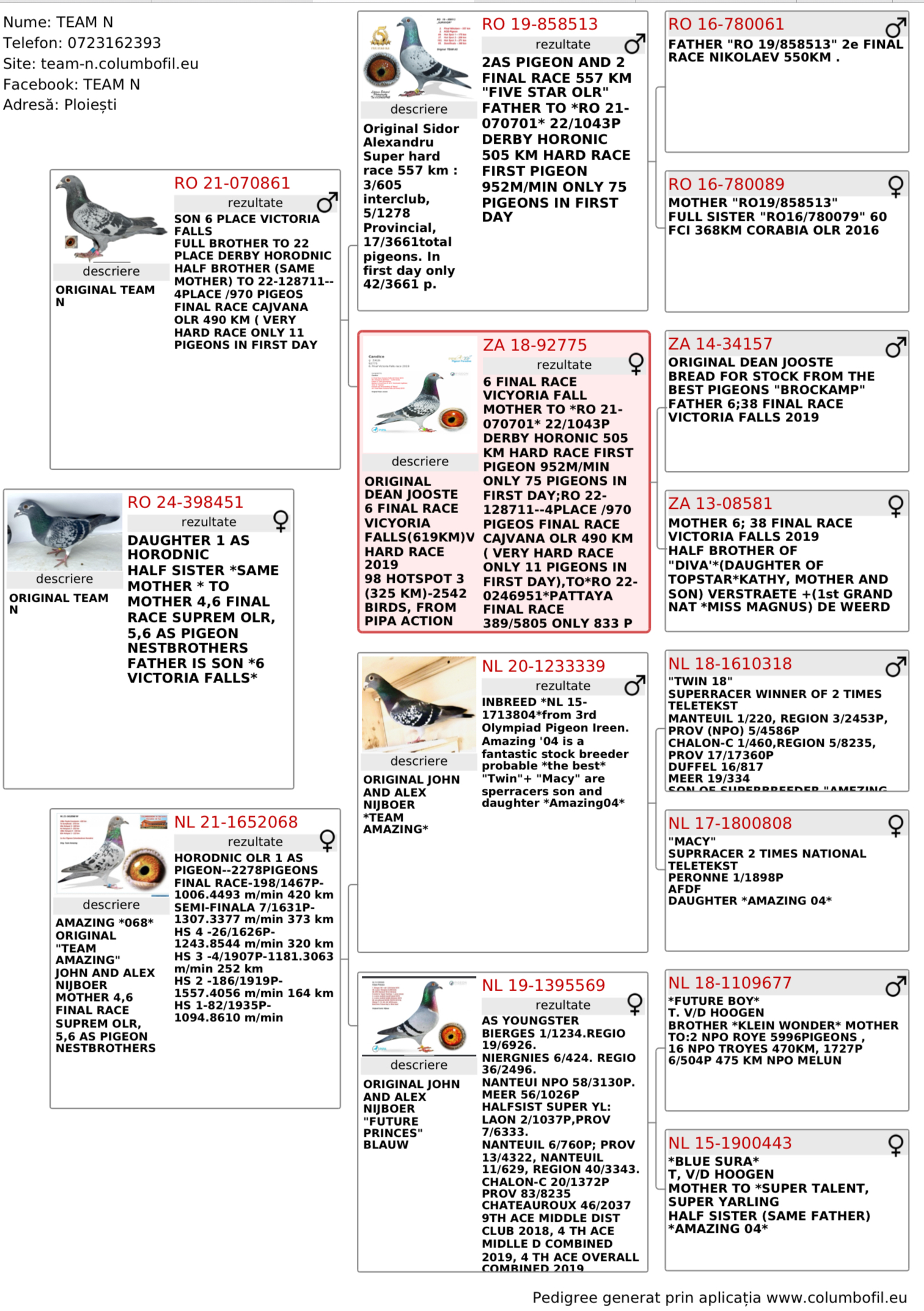 MOTHER TO *RO 21-070701* 22/1043P DERBY HORONIC 505 KM HARD RACE FIRST PIGEON 952M/MIN ONLY 75 PIGEONS IN FIRST DAY;RO 22-128711--4PLACE /970 PIGEOS FINAL RACE CAJVANA OLR 490 KM ( VERY HARD RACE ONLY 11 PIGEONS IN FIRST DAY),TO*RO 22-0246951*PATTAYA FINAL RACE