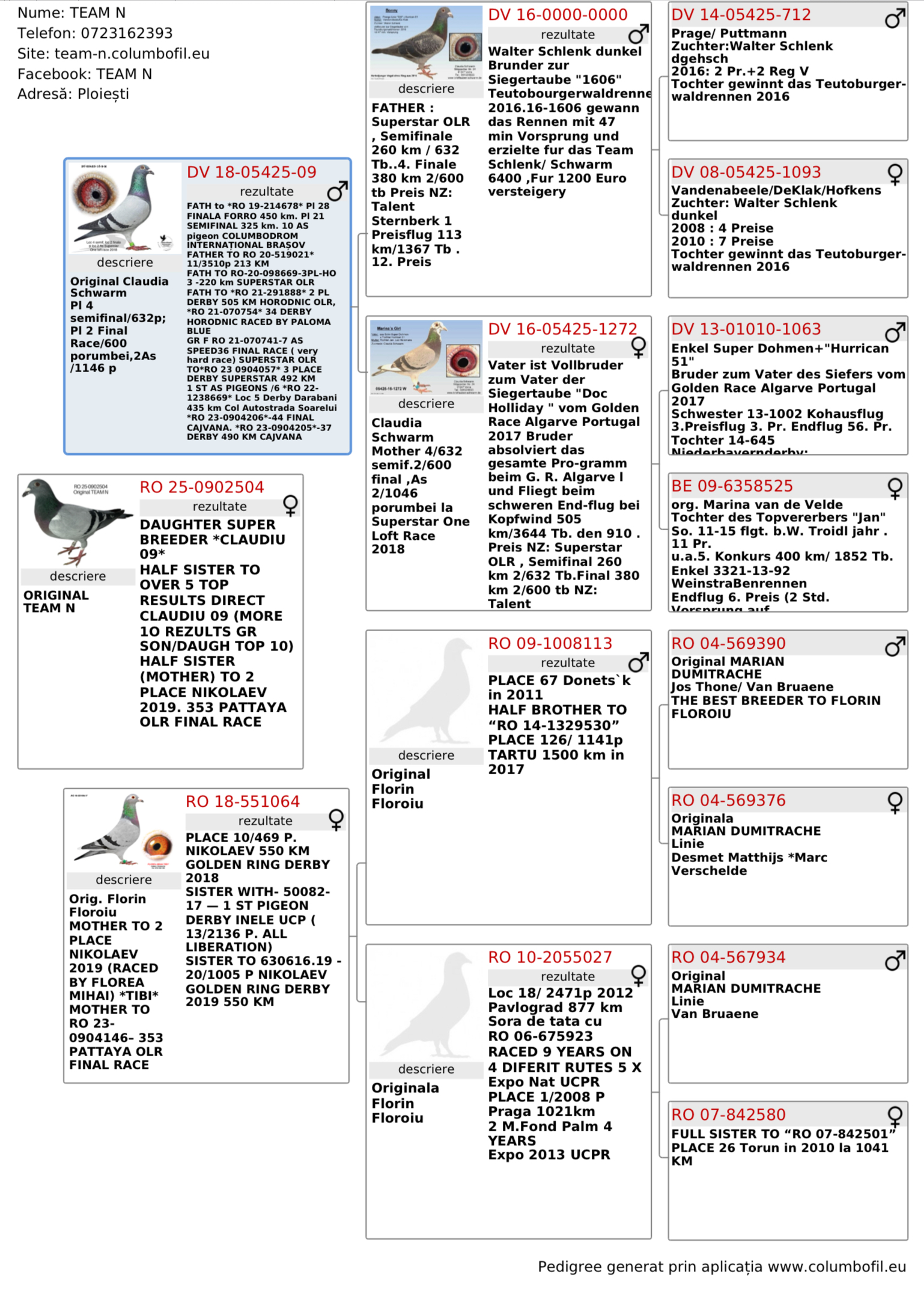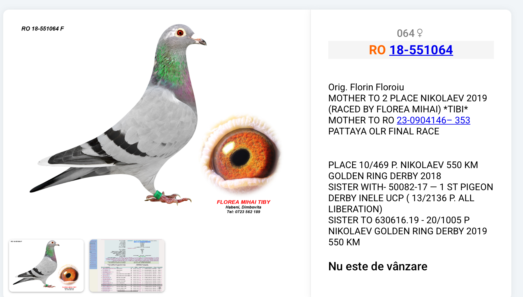 FATH TO *RO 21-291888* 2 PL DERBY 505 KM HORODNIC OLR, *RO 21-070754* 34 DERBY HORODNIC RACED BY PALOMA BLUE