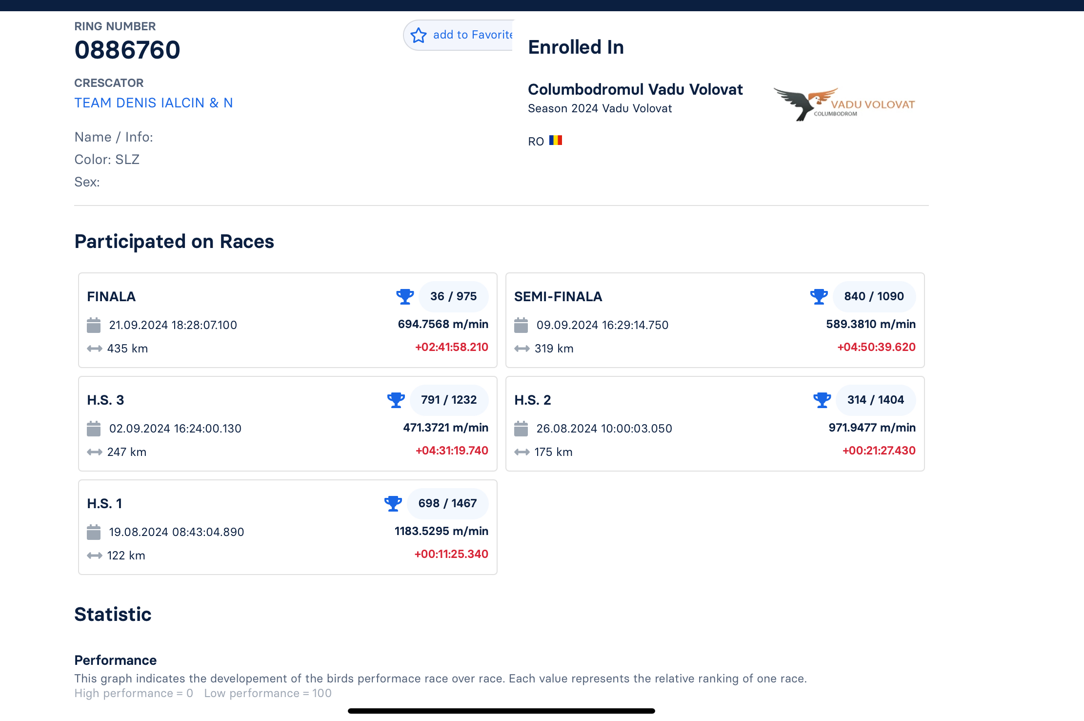 to*RO 060750* 6/362p Final Race Suprem OLR,*RO 22-1238729*17 PLACE SUPERSTAR OLR VERY HARD RACE 420 KM 13 AS PIGEON
